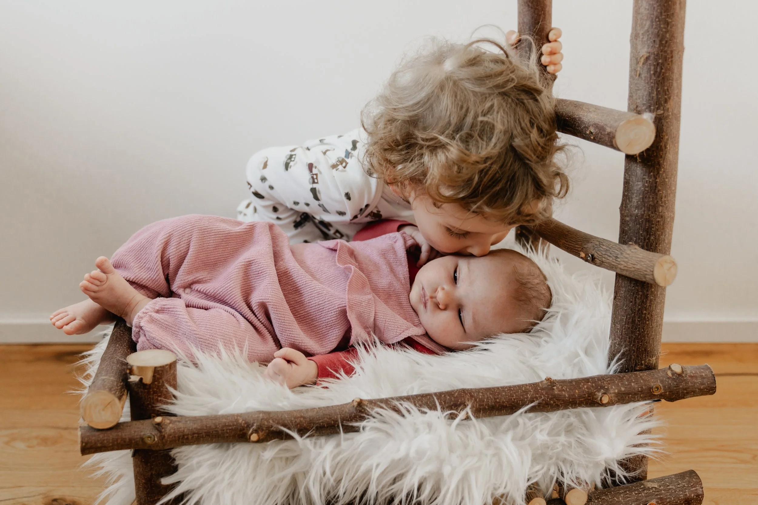 Als zweifache Mama weiß ich aus eigener Erfahrung, wie wichtig es ist, zuerst einen Draht zu den Geschwisterkindern aufzubauen. Für sie ist so ein Shooting eine neue Situation – und gleichzeitig verändert sich gerade ihre ganze Welt.